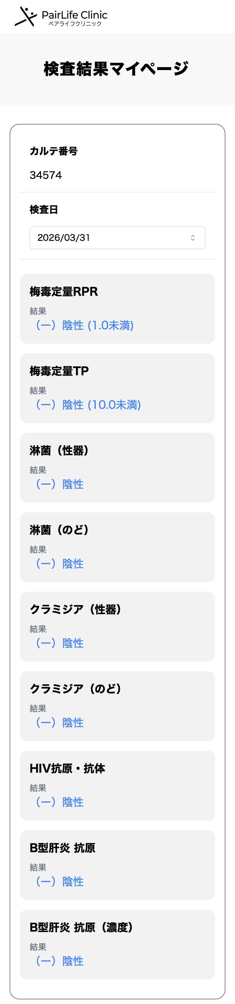 性病検査結果一覧